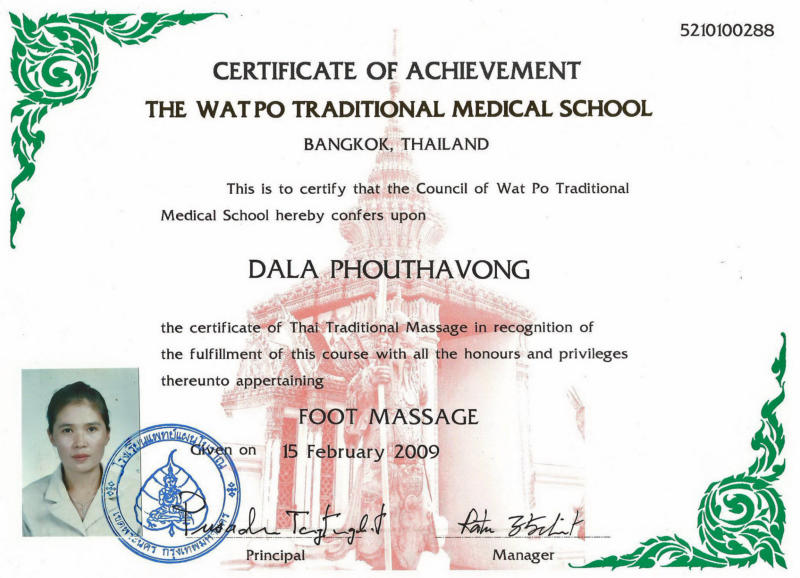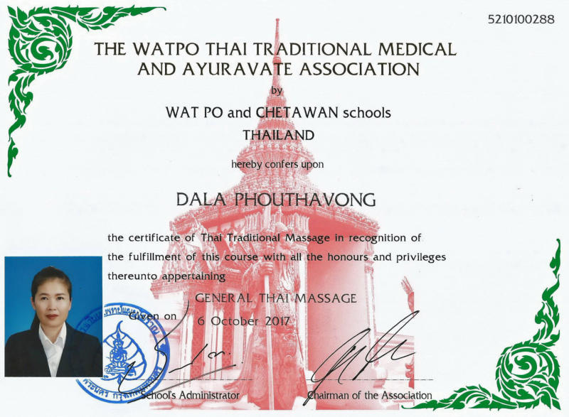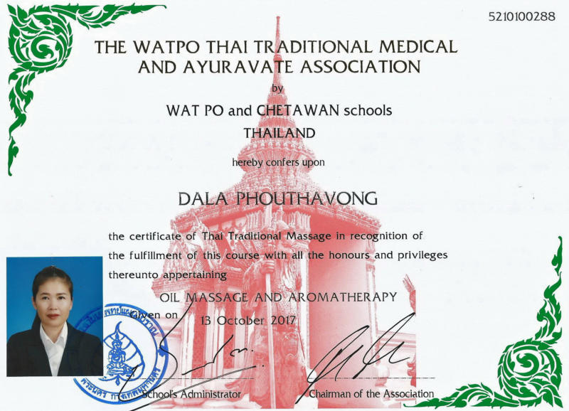 Diplôme massage thaï